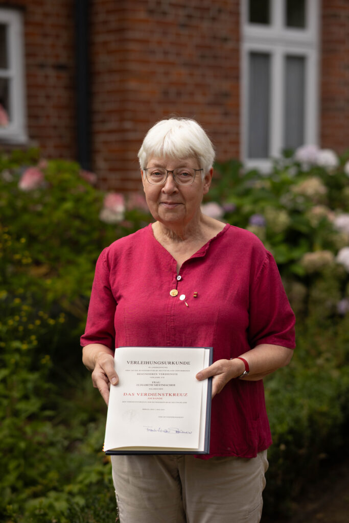 Lieschen ist es ein besonderes Anliegen, das Bundesverdienstkreuz nicht allein für sich zu beanspruchen. “Ich widme den Verdienstorden allen Helferinnen und Helfern, die mich jahrelang bei meiner ehrenamtlichen Tätigkeit unterstützt haben. Allein wäre das nicht möglich gewesen.” so Lieschen Mestmacher in ihrer typischen Art. “Besonders dankbar bin